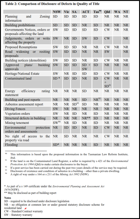 To add to the confusion, there are extensive inconsistencies across the various Australian jurisdictions in terms of disclosure requirements (See Fig. 3 ). In the author’s opinion, there is a need for discussion regarding a nationally consistent approach to disclosure. Furthermore, it has been suggested that we should investigate using technology to enable greater coordination; even potentially, a single search portal for government information (Duncan, et al., 2017). Deploying this Australia-wide, could result in uniformity of disclosure requirements in each of its states and territories. Imagine a PEXA for searches! If this information could be accessed by buyer and seller alike for a reasonable fee, it would eliminate or at least reduce placing the financial burden on either party.